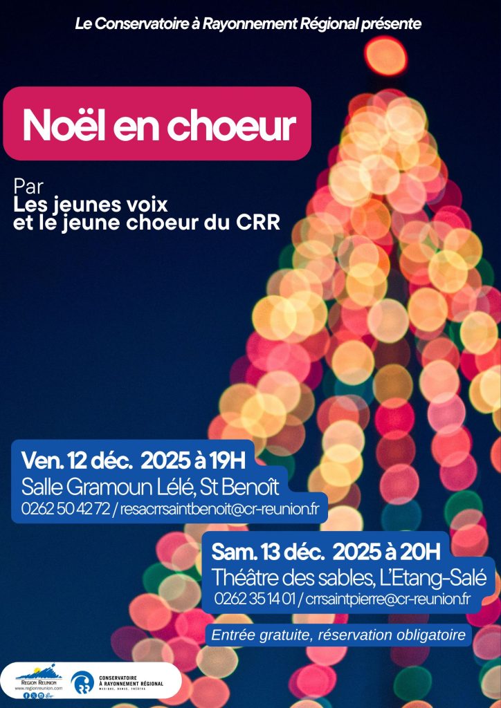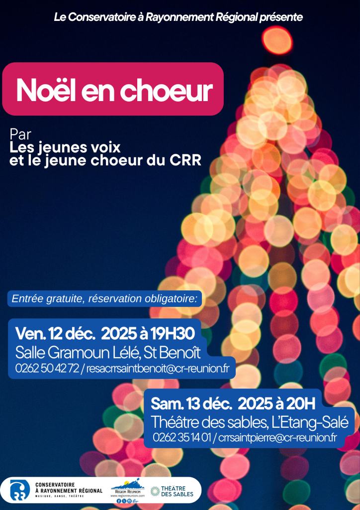 Vous trouverez le programme du concert ci-dessous: https://conservatoire.regionreunion.com/wp-content/uploads/2025/12/Programme-noel-en-choeur-2025.pdf